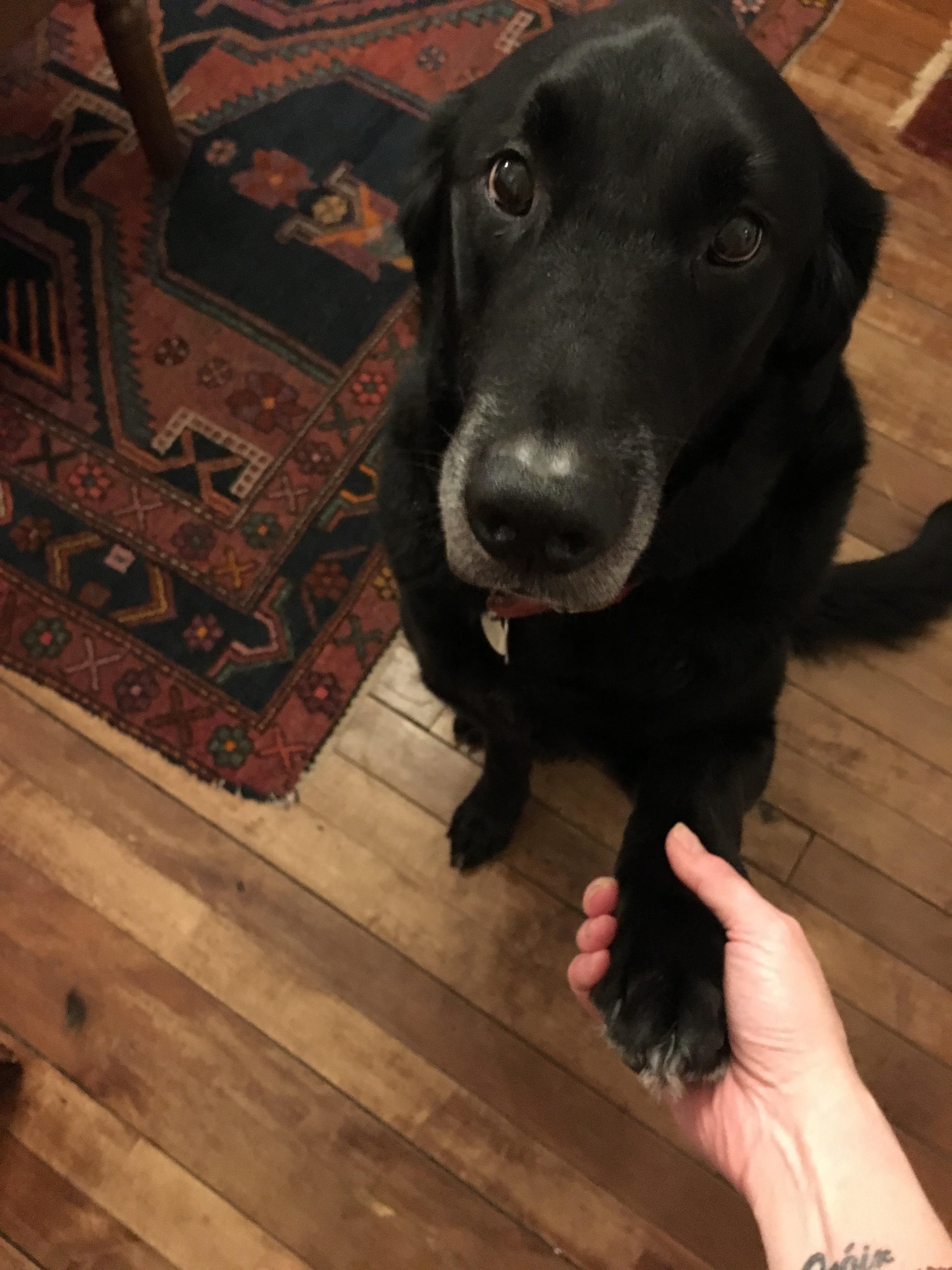 Me: It’s when I gently massage your legs, and rub lotion into your paw pads…(whispering) and then I clip your nails…