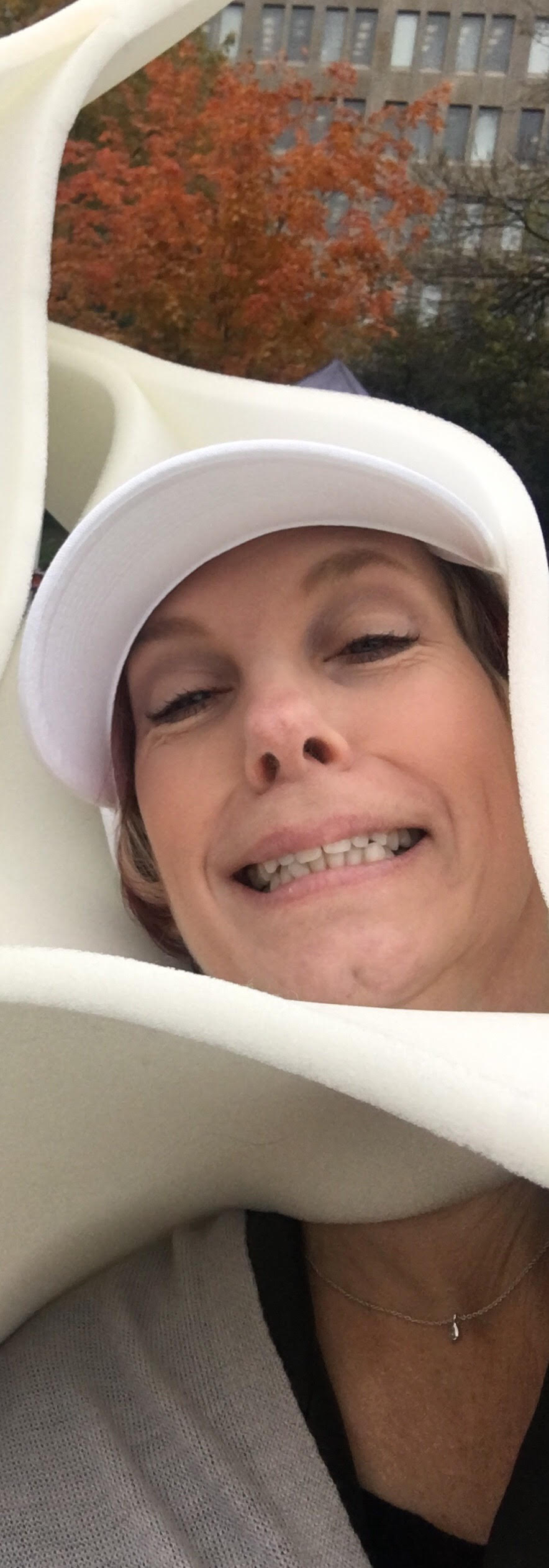 Me: You know—think about it. The first person is wearing a large pink thing that looks like a mushroom top, and the rest of us are like a straight shaft…