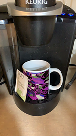 Me: It’s worse over here by your office—wait a minute. Do you have a cup of COFFEE in there?!