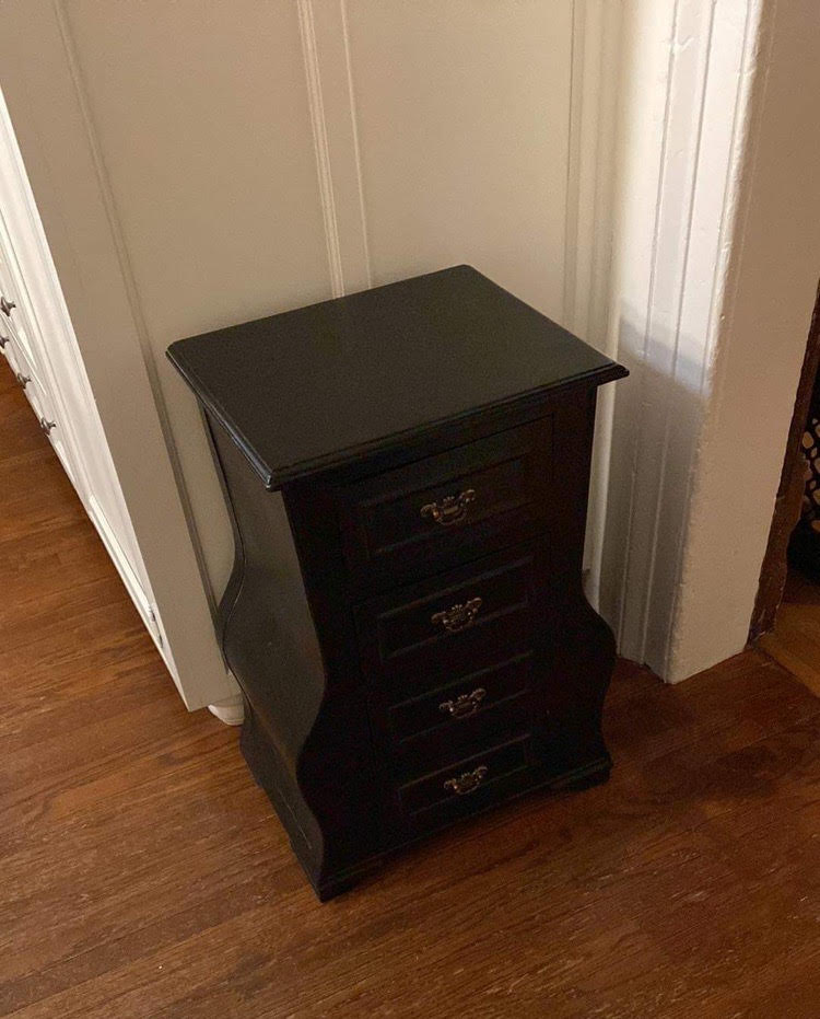 About a month ago, I bought a small black dresser at a thrift store out of town. I didn’t have any space in my booth, and it needed a little paint touch-up so it sat in the corner of our family room for a while. But last weekend, I got ambitious and repainted the top, then decided to take the drawers out and give them a freshening up as well. But when the drawers were all out, I realized that there was something in the bottom of the dresser. It was a driver’s license. I pulled it out and then got a flashlight to check for anything else—sure enough, there was a college student card in there as well. They both belonged to the same girl. Her name (which I won’t tell you here) sounded really familiar, but I didn’t recognize her—I mean, why would I? The address on the ID was from a particular part of Toronto where I’d never been, and the ID was ten years old. And of course, if you know anything about me at all, you’ll know my mind went immediately to SERIAL KILLER. As in, a serial killer murdered this girl then donated, as serial killers do, some items to a charity shop, forgetting that his trophies were in the bottom. I was determined to find out who the mysterious young woman was, and perhaps solve a crime! The program she was taking at college was on the student card, so I went to LinkedIn, assuming that she’d continued in that profession. Nothing. Until I added the name of the college to the search. Tada! It came up with a picture of what seemed to be the same girl but with a different last name. But she hadn’t posted anything for over a year, and the website link on her profile had been de-activated. The plot thickened.