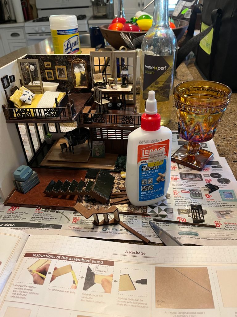 The other thing I did this week was (almost finish) my new miniature dining room. I don’t know why I love doing these things so much, and I don’t know whether it’s going to lead to me being a full-blown dollhouse person, but it makes me happy. And here’s a challenge–take a look at the room and if you can identify the one thing that’s still missing (because remember, I said “almost finished”), that will cement you as one of the people who know me the best (Anonymole, I’m looking at you), and I will name a character in my next murder story after you.