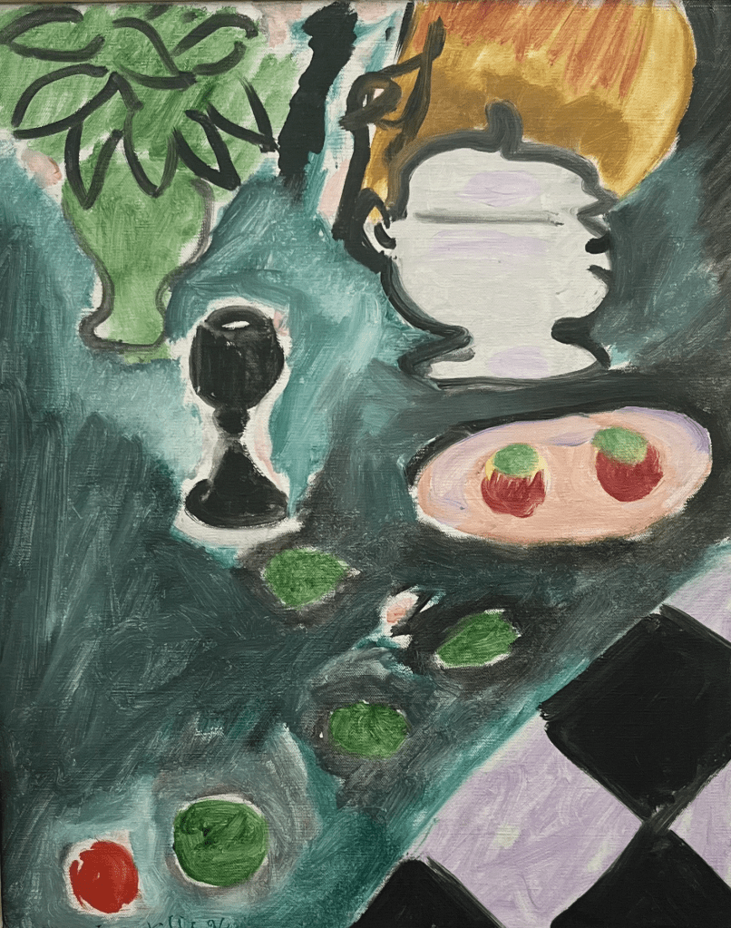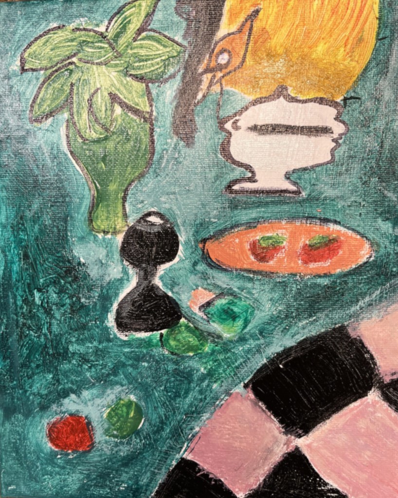 In other news, as promised, I have faithfully recreated one of the paintings that we saw in the Museum of Contemporary Art. Below, you’ll find a photo of my painting and a photo of the original. Which one is the copy? Bonus marks if you know the original artist: