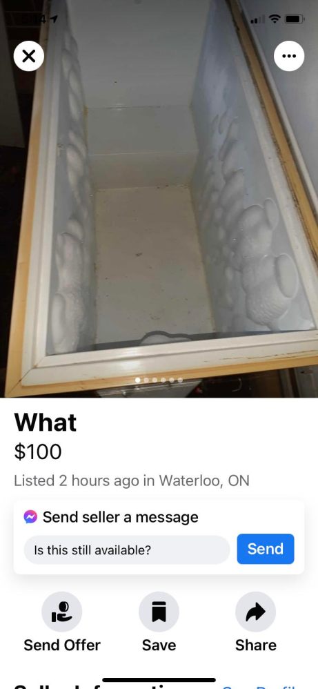I could literally do this all day. What is a fun game. That’s a statement, not a question. But seriously, what is what? An un-defrosted freezer for $100? Or…a coffin? What?
