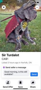 No one knows. The more important questions are these—Is it life size? Is it inflatable? Does it float? Can I use it as a centrepiece in a really crazy fountain in my front yard? Because THAT would be a terrific addition to our neighbourhood.