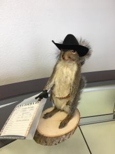 It was pouring rain when we arrived in Ketchikan, and it didn’t stop all day. We were soaked by the time we got on the tour bus, whose driver was called Helen. She was oblivious to the fact that we were cold and wet, and that the windows of the bus were so fogged up by our dampness that no one could see out of them. This kind of ruined her tour “patter” which consisted mostly of her saying stuff like “If you look out the window to the right, you can see a bald eagle” or “If you look out the window to the left, you can see a totem pole”. We were all too busy trying to wipe the windows off and shivering to see much of anything. The best part of the tour was when she took us to a totem-carving centre where they had these bizarre stuffed squirrels dressed like explorers, cowboys, and other things.