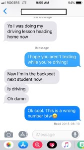 Student (on phone with mother): Well, I’m done all my work, I wrote my quiz and got perfect, and (whispering) I thought if I came home early it would be OK cuz you said we could do that thing….remember–the headphones? You said we could go get the headphones if my marks were good?…(to me) Um, I vomited, so I’m sick.