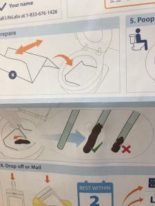 Me: I didn’t imagine I would be spending Saturday morning leaning over a toilet full of a steaming pile of poo, worrying about offending some unknown lab technician with my clumsy vial-handling skills. Also, the instructions were very unclear about where the wiping took place in this whole process, so I had to improv that part. I can’t believe you did this three days in a row.