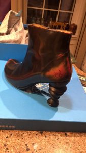 As you may remember, I am now a Lady, having been presented with the title to 10 square feet of land in a nature reserve in Scotland after complaining that everyone else in the family was nobility except me. Kate thought it sounded kind of sketchy, but it’s actually true (well, the landownership part if not the “peer of the realm” part), and on the second last day of our trip, Ken, Kate, and I decided to drive up to the Duror area to visit our property. We didn’t know what to expect. We had directions from someone named Stewart, and we were told we were too late to book an actual tour, but we were welcome to come and visit our property. When we got there (down a single-track road, because that’s how you know you’re in the United Kingdom), we came out into a parking area with a seemingly deserted small, log-style cabin. But there were other cars around, so we knocked on the door. A woman called for us to come in, and then next thing you know, we’d logged into the wifi, downloaded their GPS app, and were handed personalized maps of the reserve. It was a lot more high-tech than I imagined it would be. We followed the GPS compass through a dead forest—“dead” because we were told that it had originally been a corporate logging area, and that the North American spruce trees had been planted too close together, causing them to crowd each other out so that none of them could grow properly. The 5 year plan was to take all of them down and plant native Scottish species, but at the time, it was dark and forbidding: